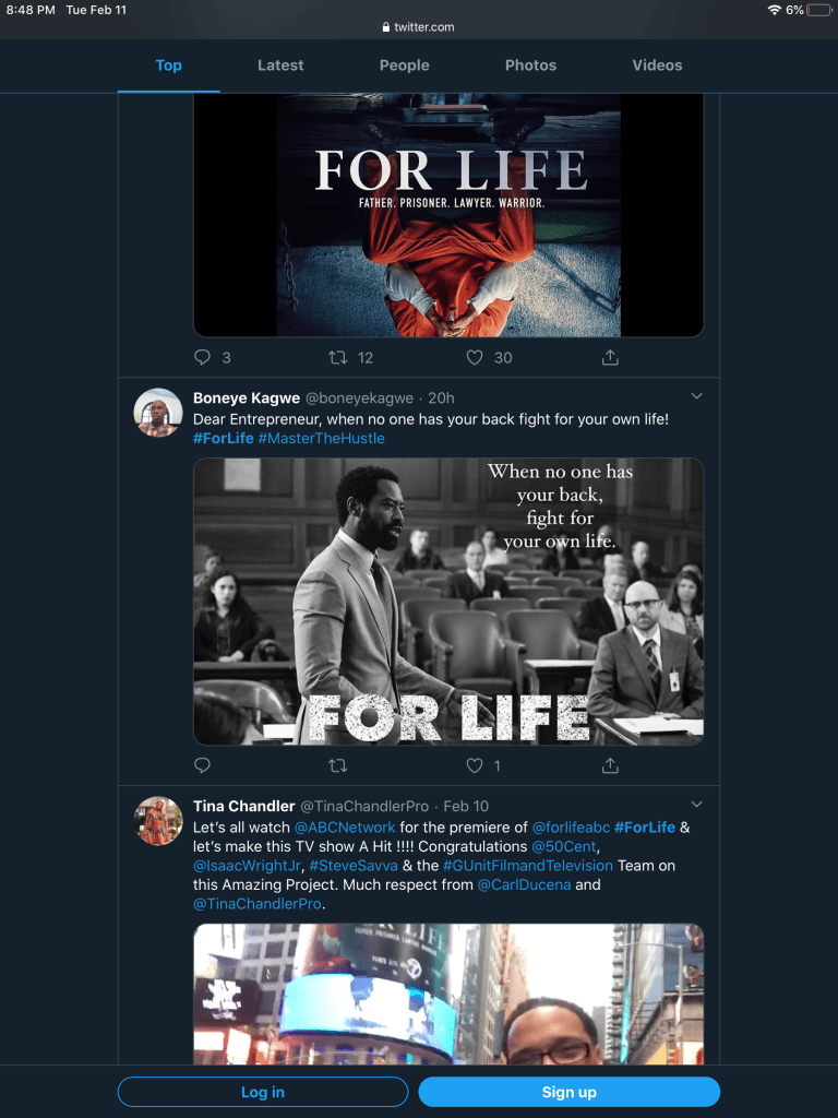 As I scrolled through twitter, I saw that a new show called “For Life” is now available to watch on ABC. As the multiple on twitter reacted to the show finally airing, a lot of people had positive reactions. Including fun gifs and more promotion for the show. In addition, a lot of individuals using this hashtag to discuss other things that involve politics. Yet this one tweet, uses the main message of the show which is “When no one has your back, fight for your own life” in which the user known as @boneyekage uses this quote as motivation for others in a hard place or in a career that risks a lot of money.